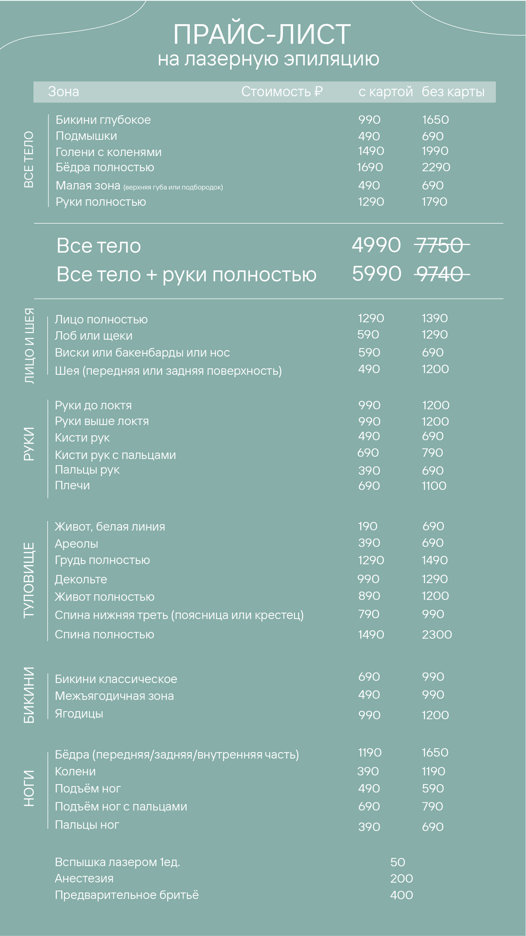 Самые вкусные цены! Например, подмышки всего за 490р. по карте!